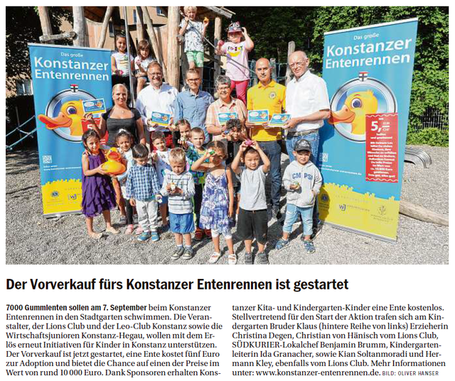 Gemeinnütziges Entenrennen der Wirtschaftsjunioren Konstanz Hegau, des Hilfswerk des Lions Club Konstanz e.V und Hilfswerk Leo-Club Konstanz e.V.